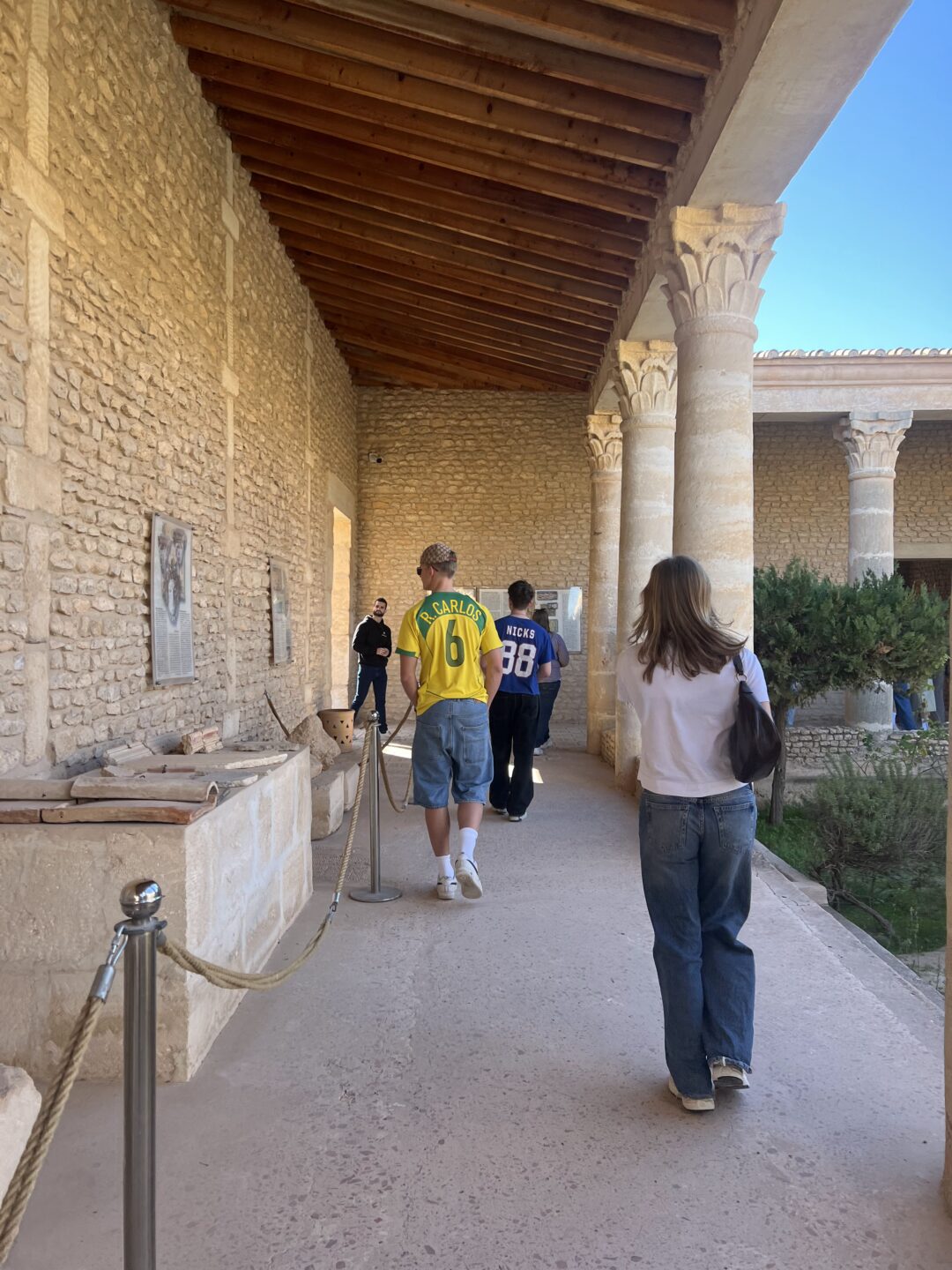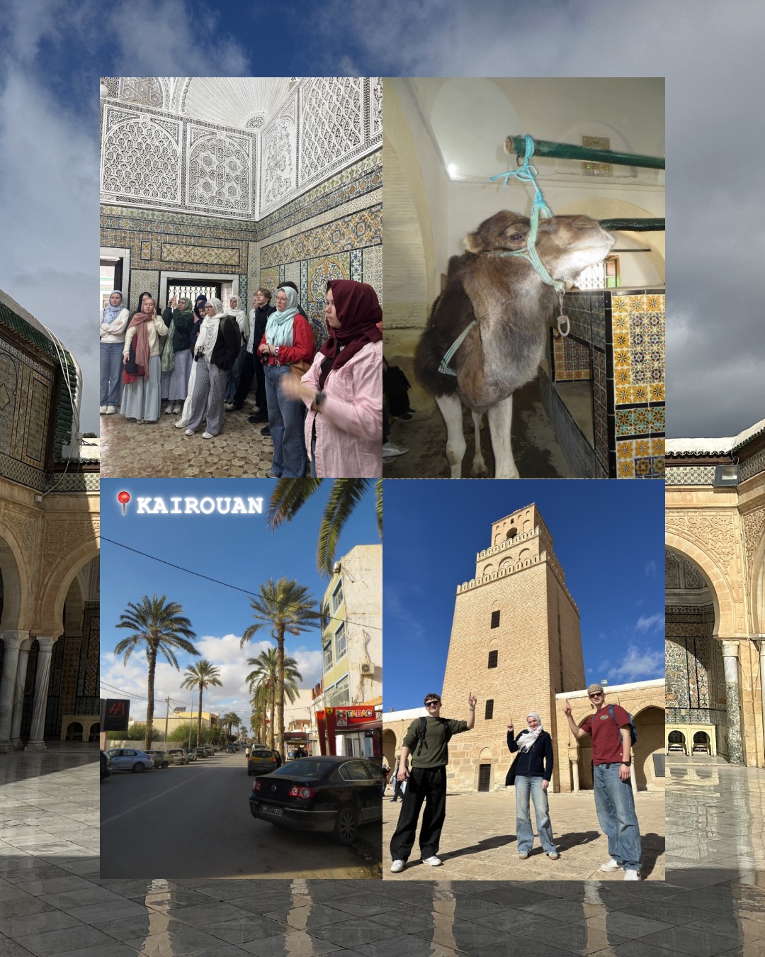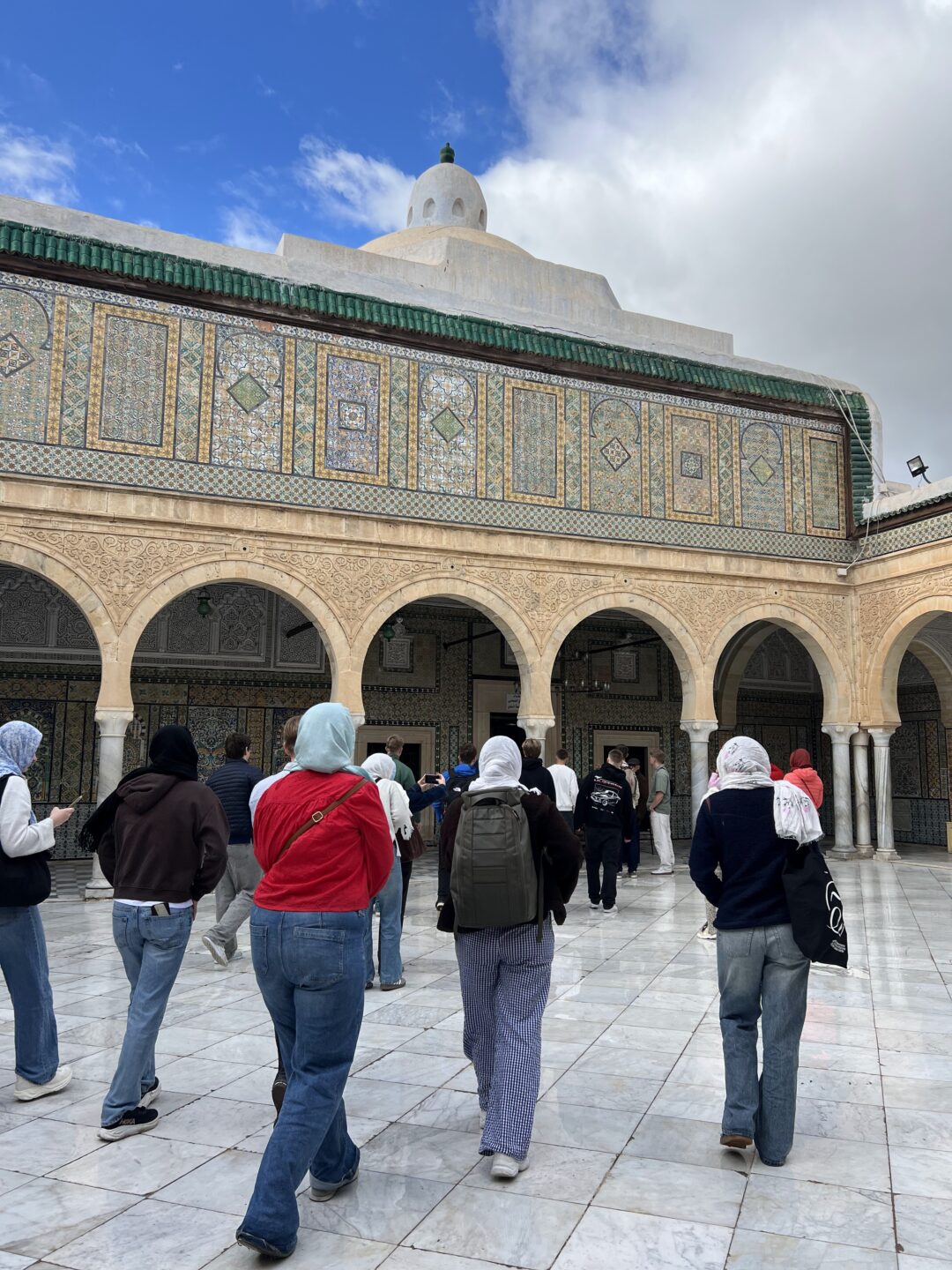 Tirsdag gikk turen videre til Kairouan, en av de viktigste byene i islamsk historie i Nord-Afrika. Her besøkte vi to moskeer og fikk lære mer om islam og hvordan troen fortsatt preger hverdagslivet i Tunisia. De vakre mønstrene og utsmykningene gjorde inntrykk – og ga oss et lite innblikk i en rik religiøs tradisjon.