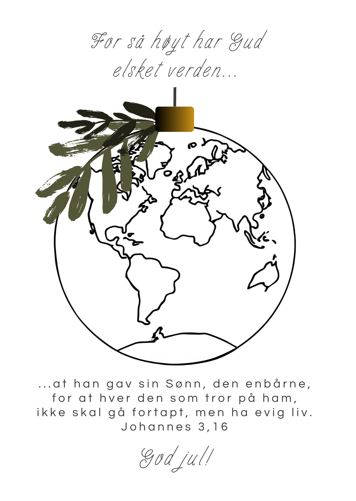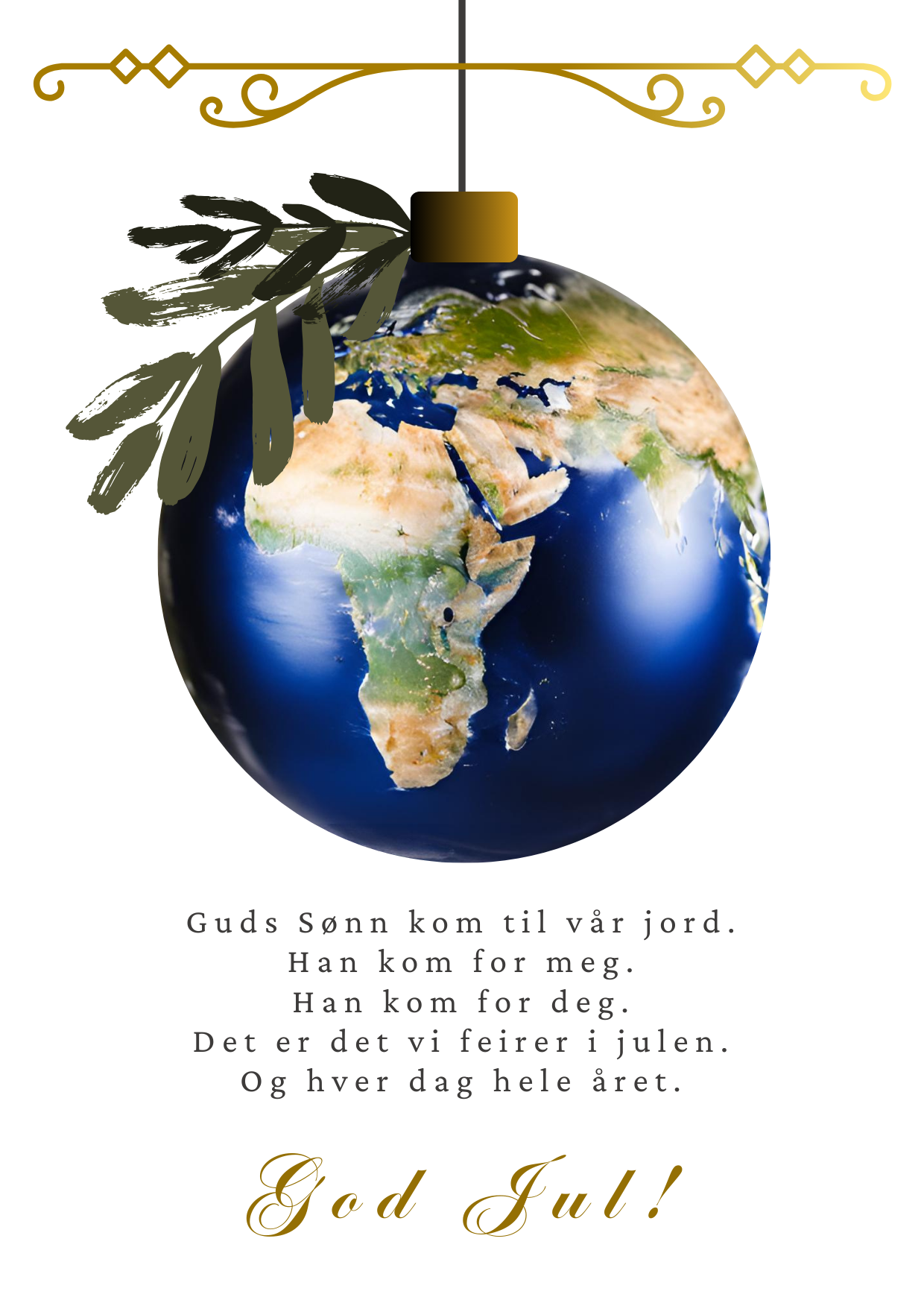 • Du kan også kjøpe blanke juletreoppheng i tre (nederst i midten) og la barna få male jordkloden. Når malingen har tørket kan du/de bruke en malingstusj eller glitterlim til å skrive eksempelvis «Immanuel: Gud med oss» eller «Johannes 3:16» på jordkloden. Om du ikke vil skrive noe på jordkloden kan du også bare feste ordene på en liten lapp på jutesnoren/sløyfen.