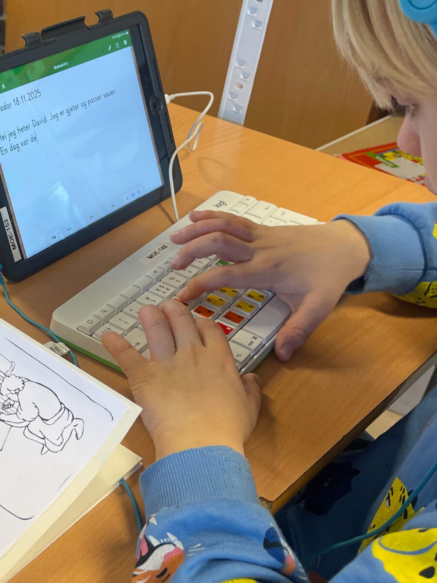 Vi har hørt og sett fortellingen på både norsk og engelsk. Vi har jobbet med fortellingen og blant annet snakket om hva som gjorde at David kunne være så modig. Før elevene skulle skrive sin egen gjenfortelling, lagde vi et tankekart sammen. Det ble fine fortellinger. Til slutt fikk de putte inn bilder fra blant annet Bibelappen. Her ser dere noe av det vi gjorde.