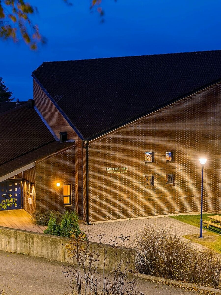 Gå deretter forbi Rema 1000. Etter noen meter ser du skilt til Ryenberget kirke og skole på venstre side.