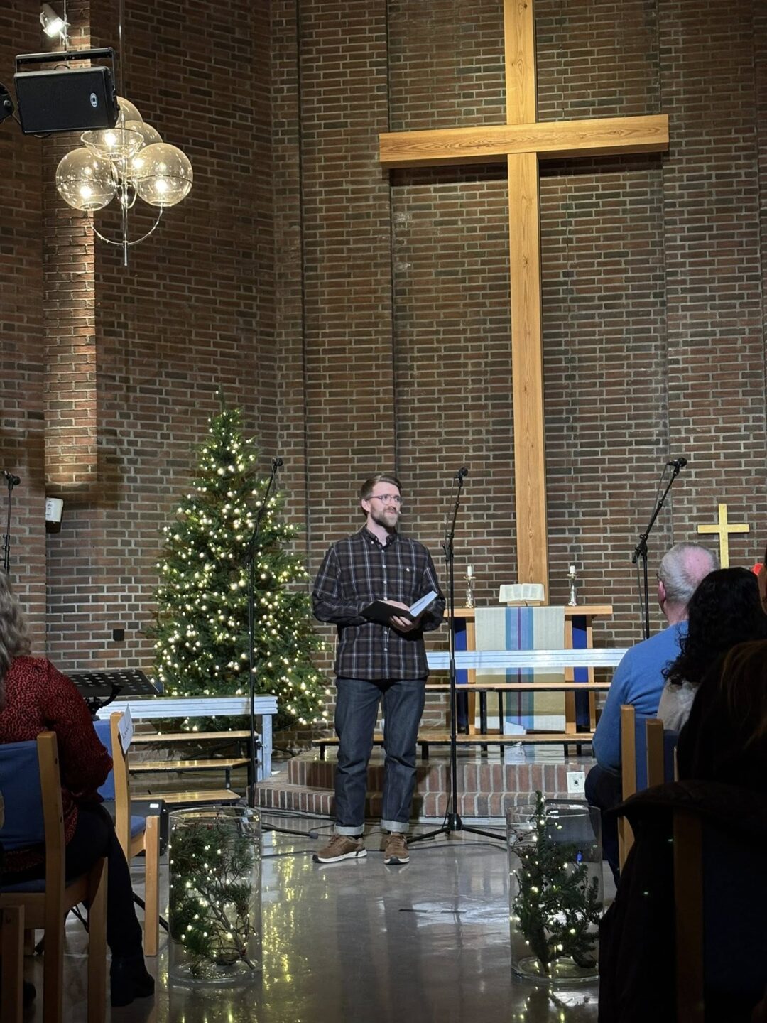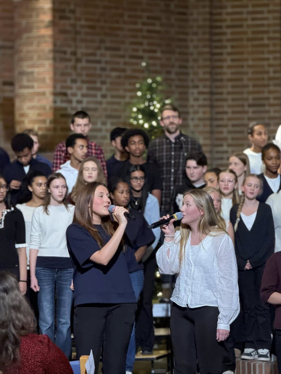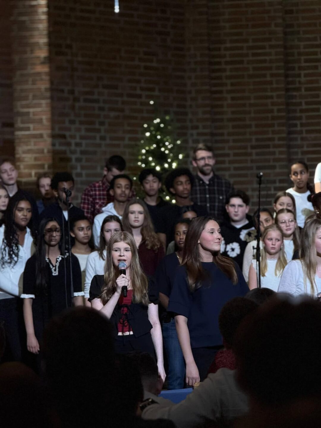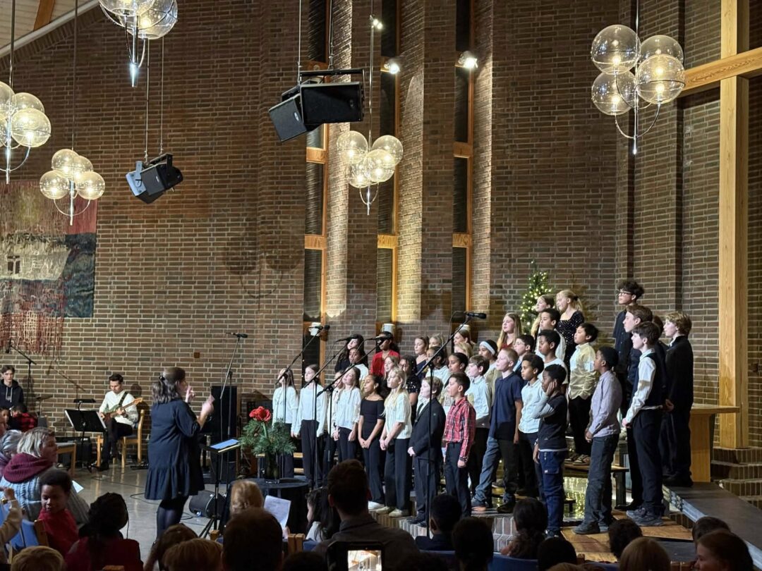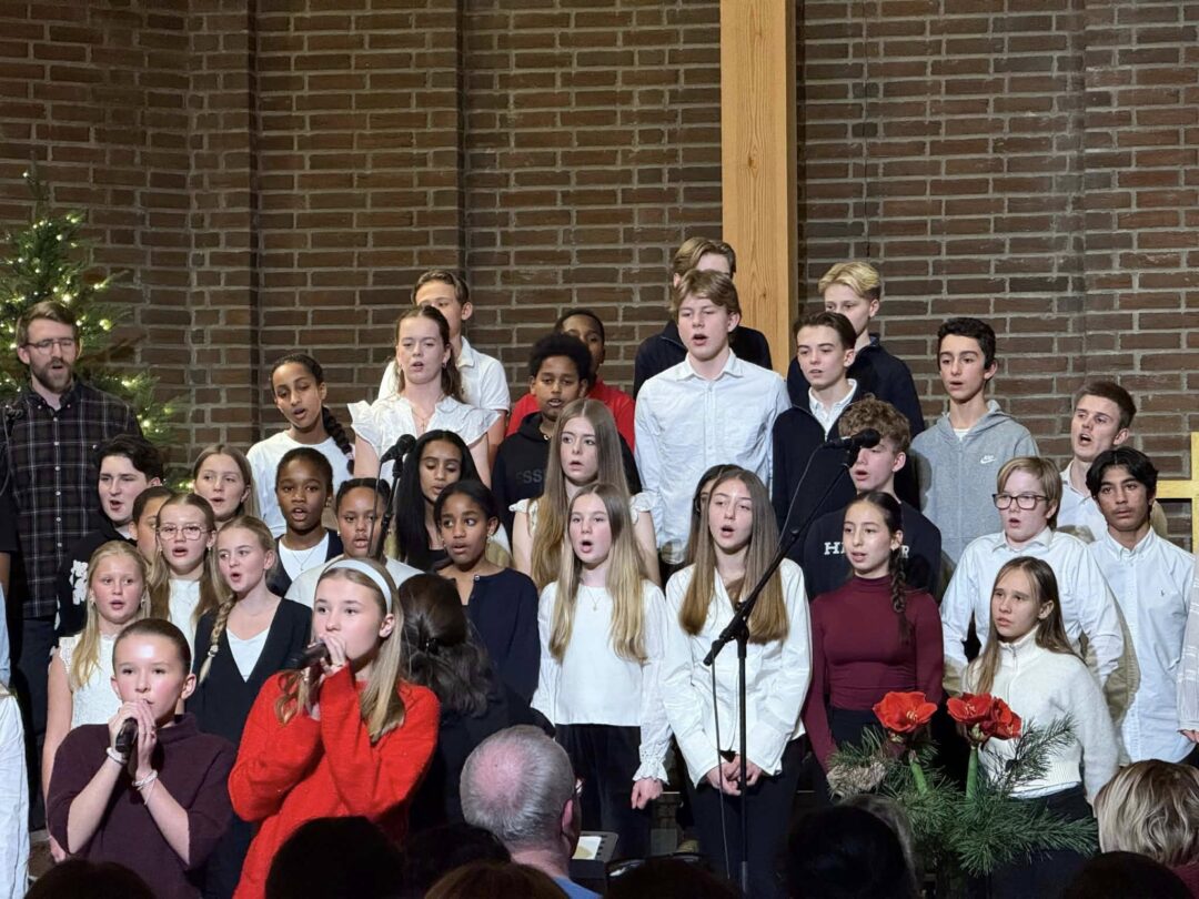 Hele skolen var samlet i kirken til Julesangaften, der elever fra småtrinn, mellomtrinn og ungdomstrinn bidro med sang og musikk. De yngste elevene på småtrinnet åpnet konserten med klare stemme og ekte juleglede. Lærerkoret overrasket mange som fremførte julesanger til stor applaus fra publikum. Kvelden ble avsluttet med allsang der hele kirken sang sammen.