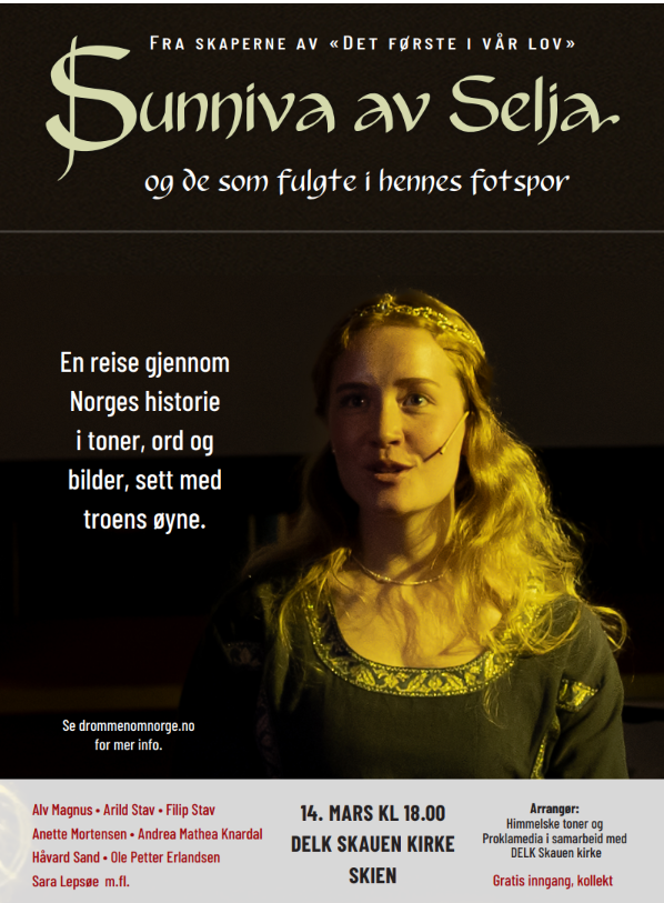 Velkommen til forestillingen Sunniva av Selja i Skauen kirke 14.mars kl. 18.00.